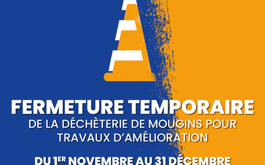 La déchèterie de Mougins sera temporairement fermée du 1er novembre au 31 décembre, afin de permettre la réalisation de travaux d’aménagement.